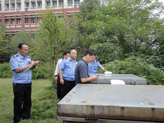 金盆岭校区检查组由保卫处副处长杨启松、副处长王煜坤、后勤集团副总经理柳翼及相关工作人员组成,对油库、电苑楼、2教复印室、南苑食堂、配电间、西苑超市一楼、南苑三栋学生宿舍等重点部位进行了检查。
