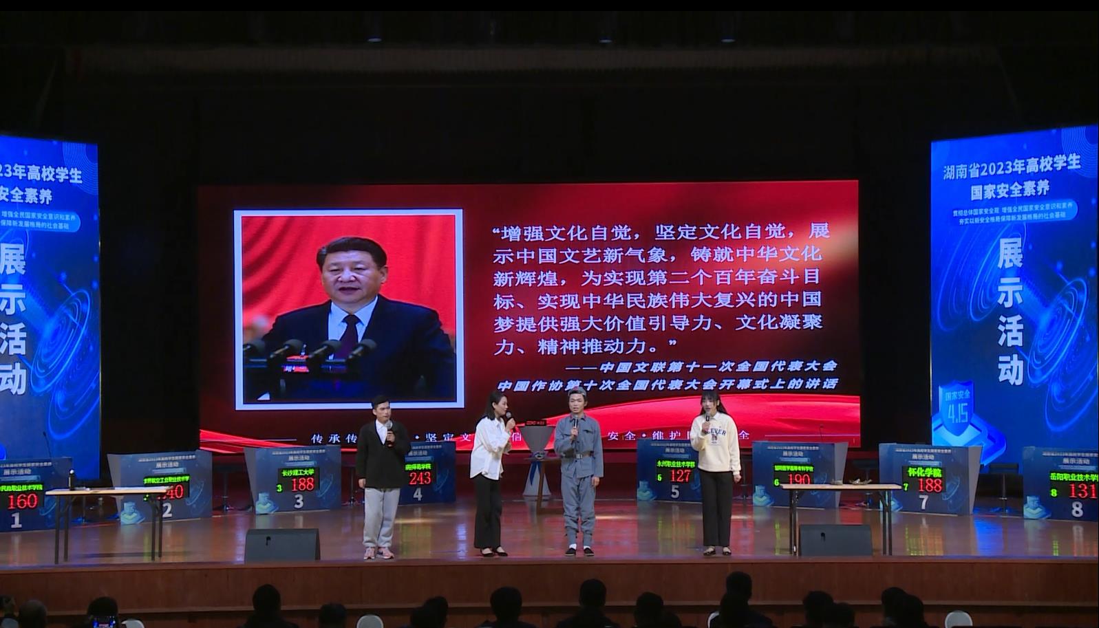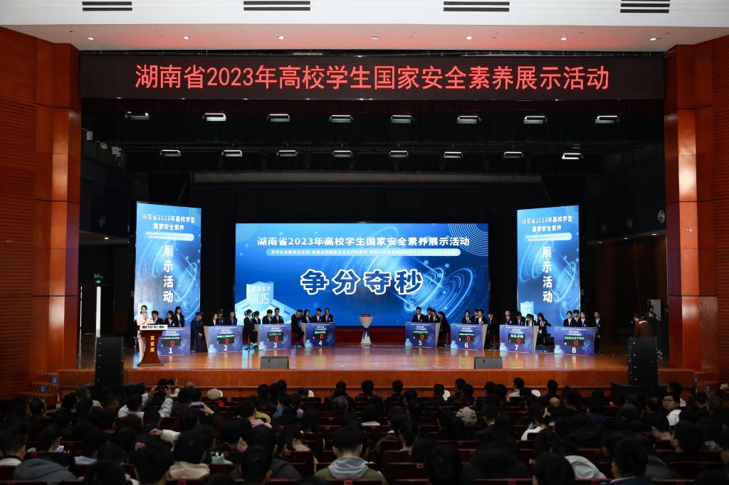 本次活动决赛设有争分夺秒、绝处逢生、安全情景剧和唇枪舌战四个环节,经过前三轮的同台竞技,衡阳师范学院和张家界航空职业技术学院脱颖而出,进入第四个环节终极对决,以辩论形式争夺冠军。经过精彩激烈的角逐,由现场专家评审投票,最终衡阳师范学院更胜一筹,夺得决赛冠军,将代表湖南省高校参加第二届全国高校学生国家安全素养展示活动。比赛共决出特等奖1项、一等奖1项、二等奖2项、三等奖4项、优秀奖14项。