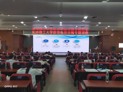 5月22日下午,2020年防范电信网络诈骗专题讲座在永利官网国际交流中心二楼科技厅举行,讲座由保卫处和学生工作部(处)联合举办,邀请长沙市公安局反电信网络诈骗中心民警翟安授课,长沙市天心区暮云派出所副所长罗立军、学生工作部部长艾楚君、保卫处相关领导、各教学院(系)副书记及全体辅导员参加,保卫处长张祎主持。