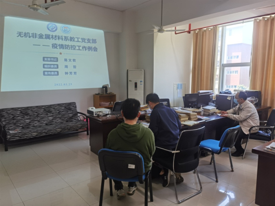 3月29日下午,材料学院无机系教工党支部在新能源大楼1-301召开了“抗疫有我 党员先行”专题党员大会,会议集体学习了习近平总书记关于疫情防控工作的系列重要讲话精神和党中央、国务院关于疫情防控工作的有关要求以及3月17日中央政治局常委会会议精神,《湖南省教育厅关于学校新冠肺炎疫情防控工作有关事项的紧急通知》,传达了学校、学院疫情防控工作会议精神,安排了无机非金属材料系当前疫情防控工作。无机系教工党支部全员出席了会议,系主任刘鹏等9名在校党员参加了线下会议,支部书记易文君等6名党员参加了线上会议。