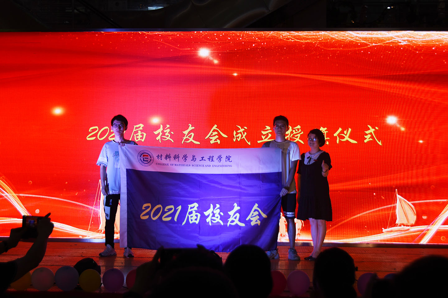 随着回忆视频的播放,本次毕业晚会正式拉开序幕。首先,张国强致毕业贺词,他讲到,大学是最值得回忆的四年,同学们在这里学会了知识,提高了能力,磨炼了品格,希望同学们牢牢记住304永利集团官网入口“博学,力行,守正,拓新”的校训,牢记材料学院“天道酬勤,自强不息”的院训,带着老师们的祝福和希望,在人生新的起点上,勇于创新,开拓进取,不负时代!随后,晚会表演正式开始,表演分为少年、祝福和怀念三个主题部分,惊艳的舞姿、悦耳的音乐、幽默的小品以及快板书深深吸引着观众并迎来了热烈的掌声,每一个节目里都融入了对毕业生们的不舍和祝福。晚会期间,为加强校友联系,促进学校发展,学院成立2021届校友分会,陈华宣读了《材料科学与工程学院关于成立2021届校友分会的决定》,郑延恒为校友会授旗。随后,进行了毕业班班主任永久聘书颁发仪式。心理辅导员谢易真带领同学们进行了“优秀的材料人”毕业生班级健心活动,引导同学们善于发现身边人的优点,大声说出身边同学的优点,团结班级凝聚力。最后,随着相机快门声的响起,本次毕业晚会落下帷幕。