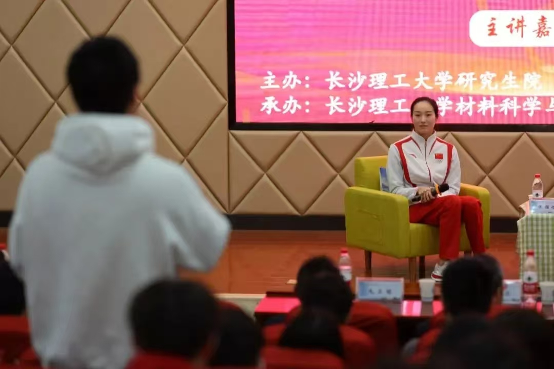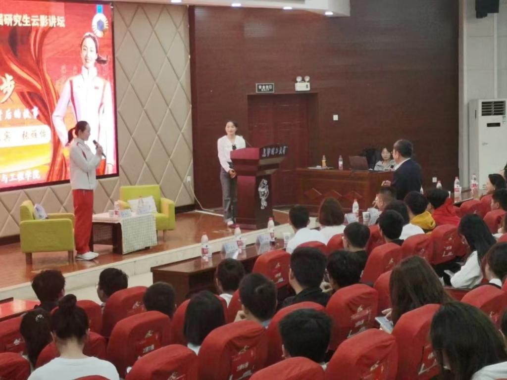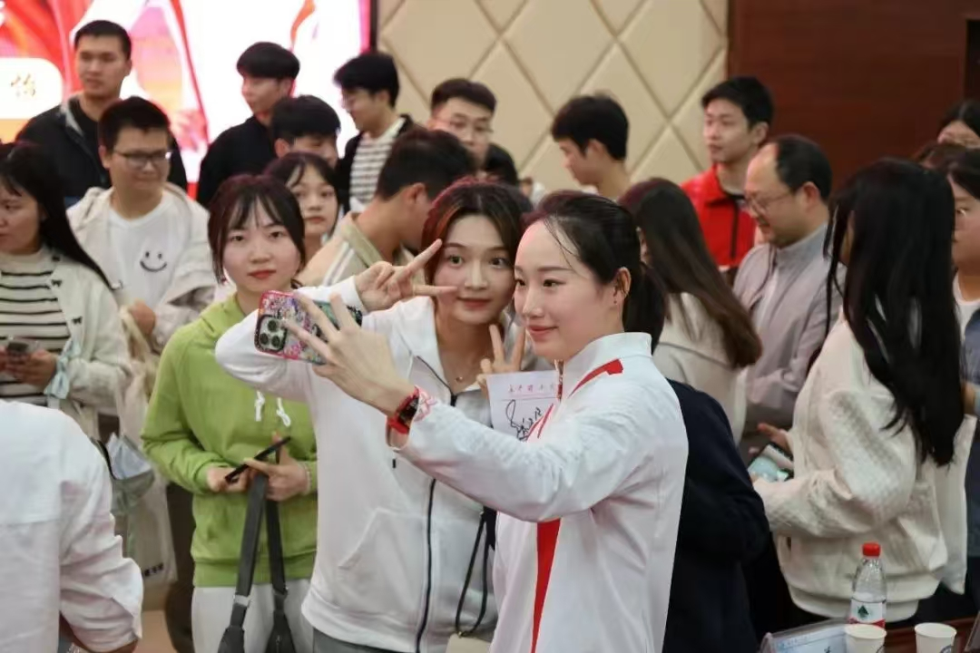 随后在观众提问环节,同学们积极向张雅怡提问,问题涵盖了训练受伤如何坚持、如何平衡训练和生活、在团队中如何更好的协调与配合。张雅怡依次都进行了详细地回复,赢得了阵阵掌声。