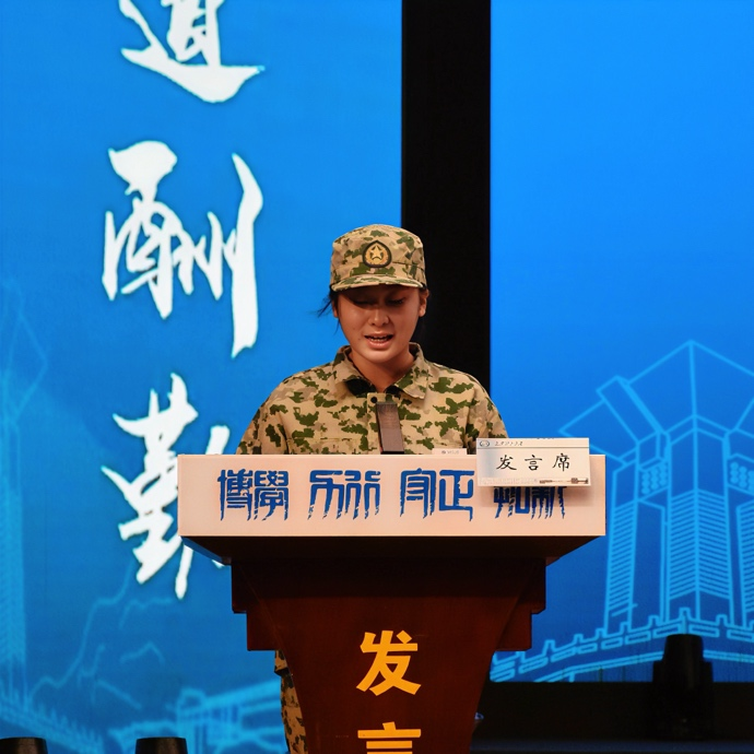 新能源2502班席乐宜作为新生代表,在发言中表达了对校园美景的喜爱和对专业学习的向往。她谈到,军训生活锤炼了意志品质,培养了团队精神和纪律意识,更加坚定了求学的信心与决心;表示要以军训为熔炉,将百炼成钢的材料学精神内化为坚韧品格,把能源材料的专业选择升华为可持续发展的时代担当;将铭记校训,肩负起时代使命,努力学习、不负韶华。