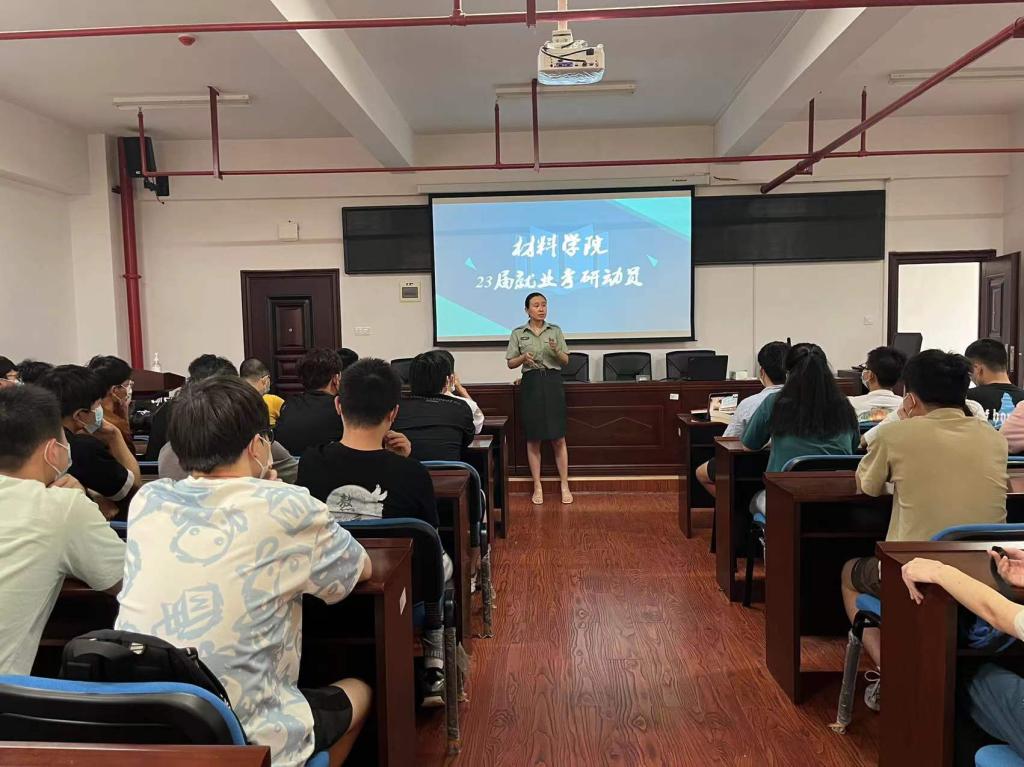 9月2日下午,材料学院在新能源大楼一号楼303和302分专业分班级召开2023届毕业生考研就业动员大会,材料学院党总支副书记陈华、就业辅导员谢易真、年级辅导员谭方林及2023届全体毕业生参会。