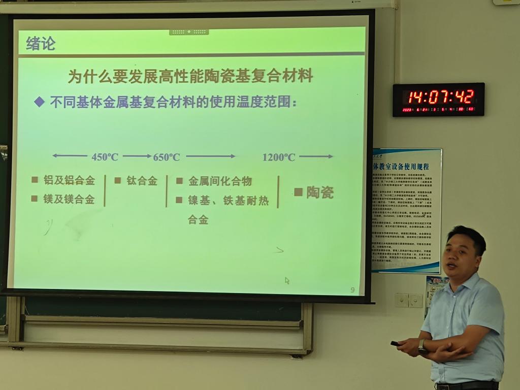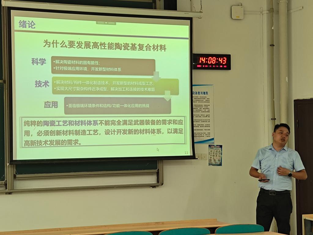 2023年6月21日,材料学院张伟博士在云塘校区工科三号楼A213室举办了主题为“纤维增强陶瓷基复合材料研究进展”的学术讲座。