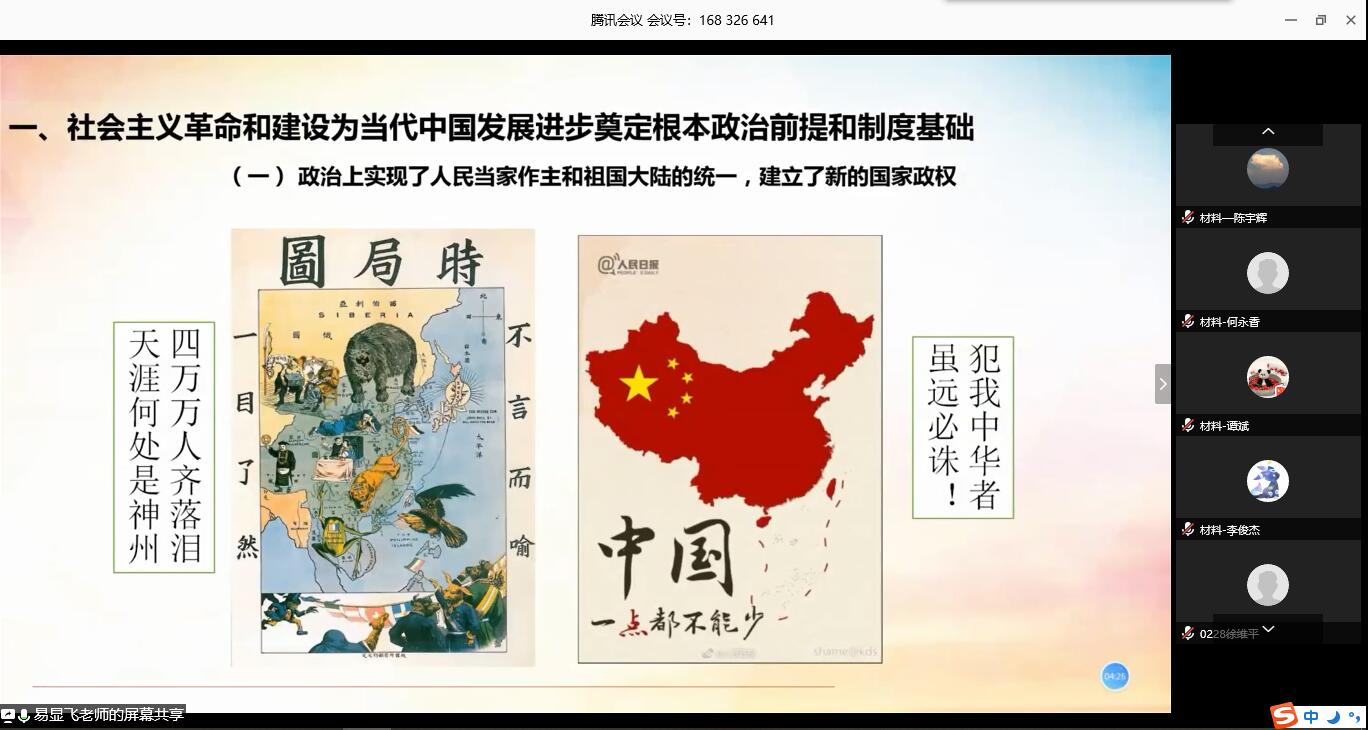开班典礼结束后,材料学院与国际学院本期学员在“腾讯会议”上共同参与了专题党课的学习,由马克思主义学院党委书记易显飞教授主讲,主题是《新中国发展的七十年》。易显飞从“社会主义革命和建设为当代中国发展进步奠定根本政治前提和制度基础”、“新时代改革开放让中国人民和中华民族大踏步赶上新时代”、“以历史和科学的眼光认识七十年社会主义革命、建设和改革的现实启示”、“在习近平新时代中国特色社会主义思想指导下为实现中国梦继续奋斗”四个方面阐释了新中国七十来年的发展,国家所取得的辉煌成是中国共产党坚强领导全国人民从政治、经济、制度、文化和外交等方面不断深化马克思主义、坚持走中国特色社会主义道路,不断改革、不断奋斗的结果。最后,易显飞对全体学员发出号召:要充分认识发展中国特色社会主义这一伟大斗争的长期性、复杂性、艰巨性,我们要进一步发扬斗争精神、提高斗争本领、不断夺取伟大斗争新胜利,在习近平新时代中国特色社会主义思想的指导下为实现中国梦继续奋斗。