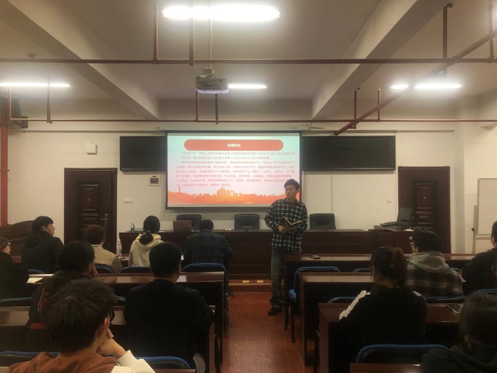 活动开始,党支部副书记邓雨凤同志给支部党员们上微党课,带领支部共同学习了习近平总书记在中共中央政治局第十一次集体学习时的重要讲话精神、中共中央办公厅《关于巩固拓展学习贯彻习近平新时代中国特色社会主义思想主题教育成果的意见》、《党史学习教育工作条例》和《中共湖南省委关于在全省开展解放思想大讨论活动的通知》,学习了全国两会的新理论,并观看了红色教育片,最后支部书记王志亮老师进行了总结发言,强调党员同志们要深刻学习党的创新理论,并时刻谨记思想联系实际,将报国之情紧密融合进个人发展的征程中。