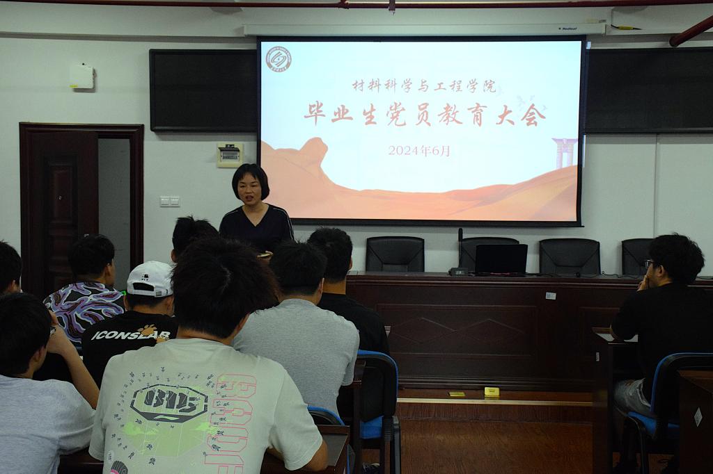 6月5日,材料科学与工程学院2024届毕业生党员教育大会在新能源大楼一栋302会议室举行,学院党委副书记邵巧艳、研究生辅导员王志亮、毕业生辅导员谢易真及2024届全体毕业生党员参加,党建辅导员谭方林主持。