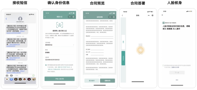 b)进入小程序后先进行【身份认证】-【合同预览】-【合同签署】-【人脸核身】;