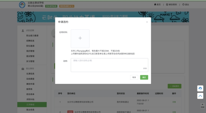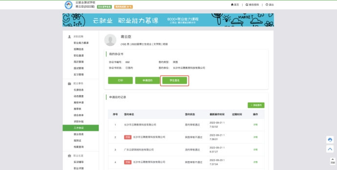 a)学生可以在【就业网】-【三方协议书】-【申请违约】,申请之后由老师审核,审核通过后,学生可发起新签;