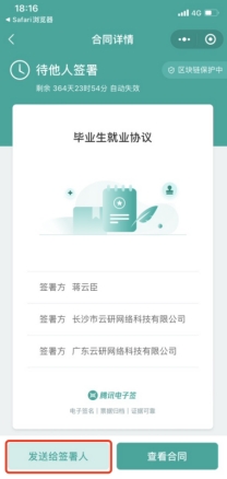 a)当老师审核完成之后,学生可以通过两种方式进入腾讯电子签小程序进行签名