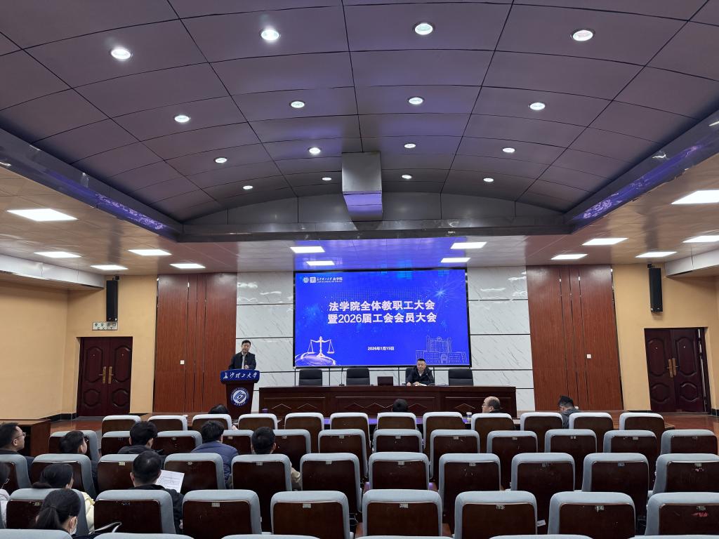 1月15日下午,法学院在四教报告厅隆重召开2025届教职工暨工会会员大会。会议以“擘画‘十五五’规划新蓝图 谱写学院高质量发展新篇章”为主题,全院教职工齐聚一堂,共商学院发展大计。