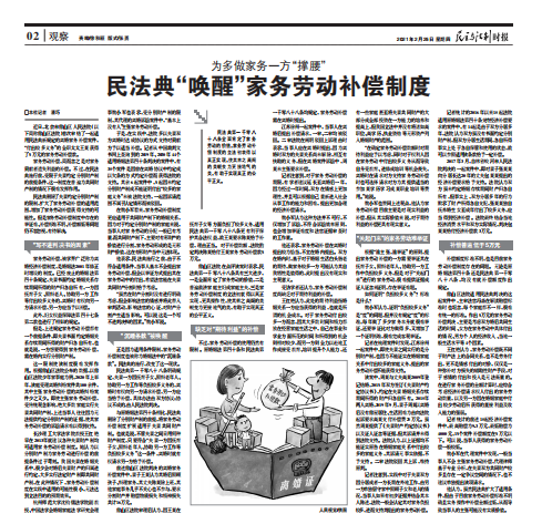 Cr:为多做家务一方“撑腰” 民法典“唤醒”家务劳动补偿制度http://e.mzyfz.com/paper/1602/paper_41976_9108.html