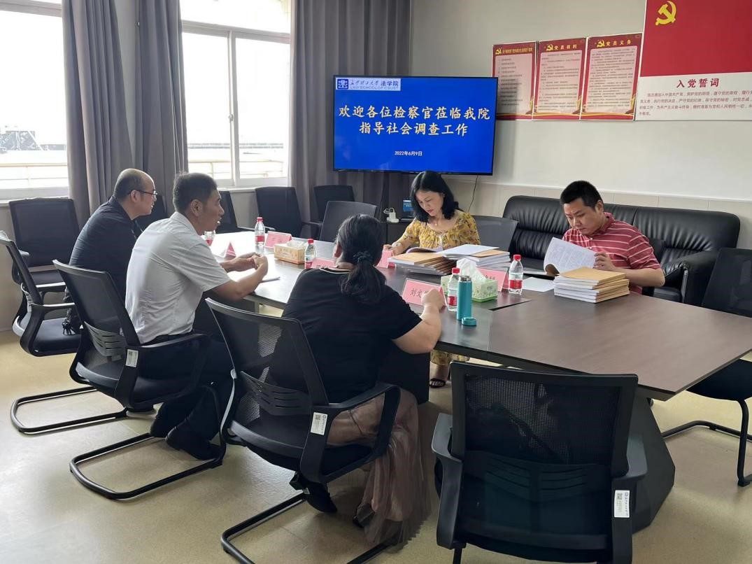 涉罪未成年人社会调查活动是永利官网法学专业的特色实践活动,更是学生接触法律实务、了解司法流程、培养法律素养、运用法律技能的重要途径。为深入开展社会调查实践教学,进一步完善学生工作能力与调查技能,2022年6月9日下午14时许,邀请到湖南省人民检察院第九部四级员额检察官廖芳敏;长沙市人民检察院第四部主任严琳;长沙市开福区人民检察院未检专干孙帷韬来到304永利集团官网入口法律研究与服务中心参加2021年度社会调查和帮教案卷评查,指导我院社会调查工作开展,法学院党总支书记田兴洪、副院长申纯、刘文莉老师参加了会议。