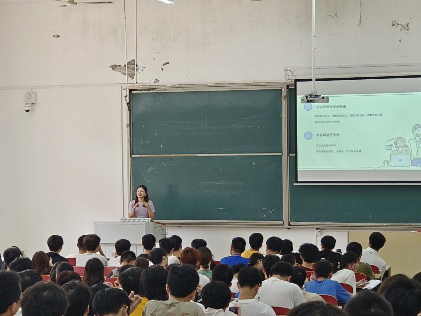 随后,来自电气2106班的黄子业作为优秀学生代表,根据自身转专业学习经历展开分享,向同学们系统地介绍了转专业关于学习、竞赛、生活等各方面的问题,并建议同学们提前做好学习规划和职业生涯规划,从而能够更好地适应本专业的学习和思维模式。