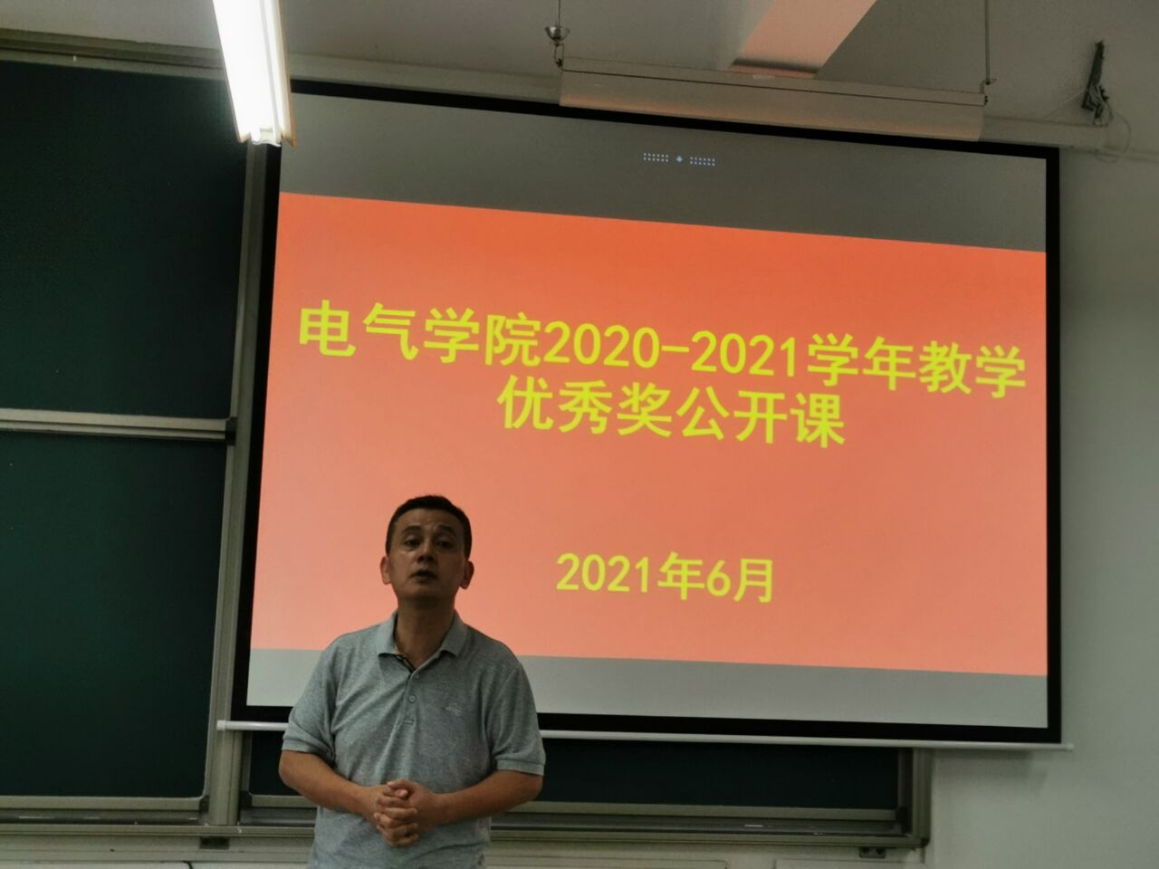 6月29日下午,电气学院在工一B212室开展2020-2021学年教学优秀奖公开课活动,活动由学院副院长唐欣主持,学院督导专家主任担任评委,学院3位教师上了公开课,学院其他教师观摩了此次公开课。