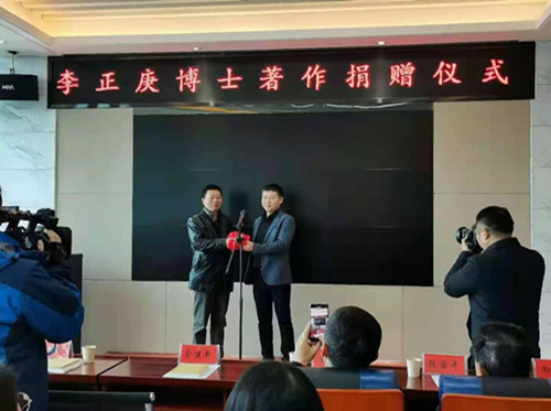 12月5日,永利官网九三学社副主委李正庚博士著作《先秦至唐书法教育制度研究》捐赠仪式在湘阴县图书馆举行。湘阴县副县长余建新、县文旅广体局、县图书馆等领导,湖南省书法家协会领导,304永利集团官网入口统战部常务副部长王静琦、九三学社主委李九苏和社员等50余人参加了捐赠仪式。