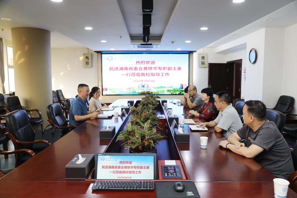 9月20日下午,民进湖南省委会专职副主委黄铁华一行来永利官网走访调研并召开座谈会。党委委员、副校长蒋璟萍出席会议并讲话。统战部常务副部长黄自力主持会议。民进湖南省委会组织处副处长刘丽、民进304永利集团官网入口支部等相关人员参加了调研座谈会。