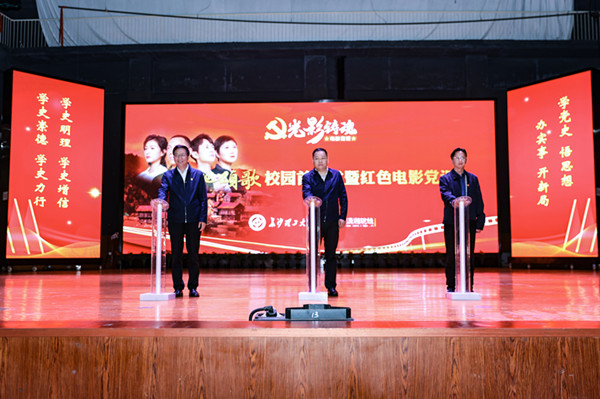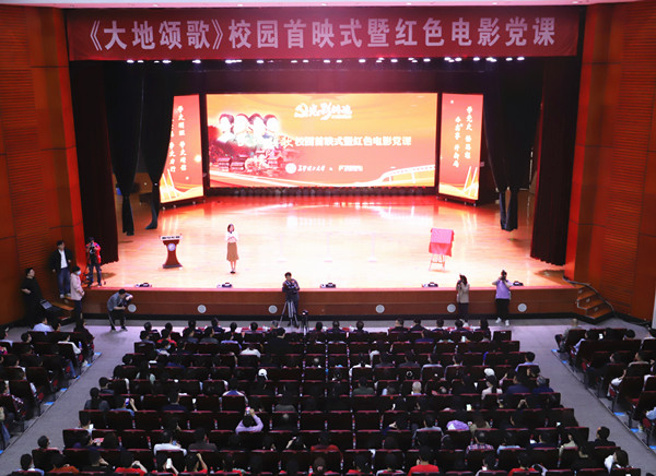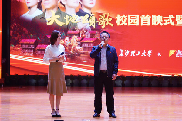 4月23日下午,《大地颂歌》长沙校园首映式在云塘校区大礼堂举行。省委党史学习教育领导小组办公室副主任、省社科院副院长汤建军,湖南广播影视集团(湖南广播电视台)党委委员、副总经理、潇湘电影集团党委书记、董事长谷良,永利官网党委书记付宏渊及全体在家校领导出席首映式,全校千余名师生共同观影。