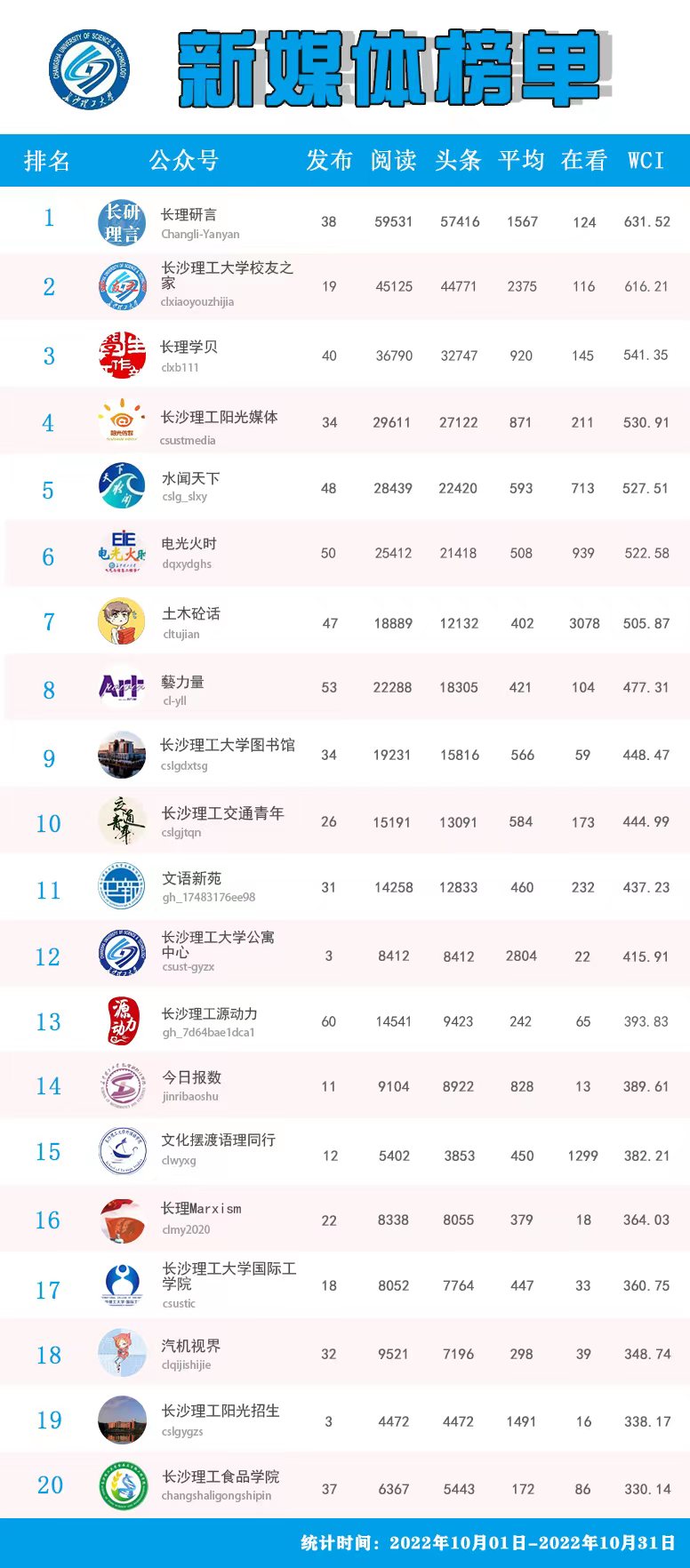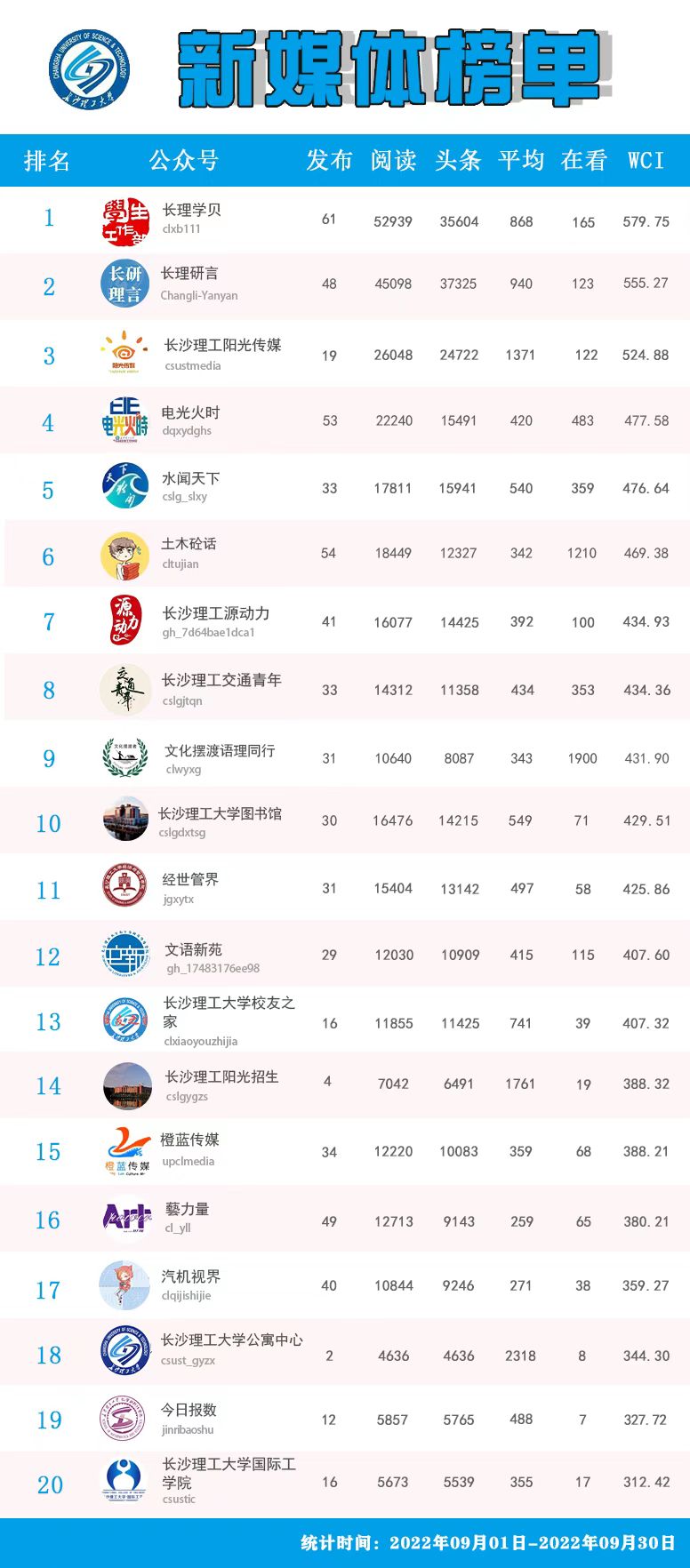 校属单位微信公众号排名(2022年9-10月)