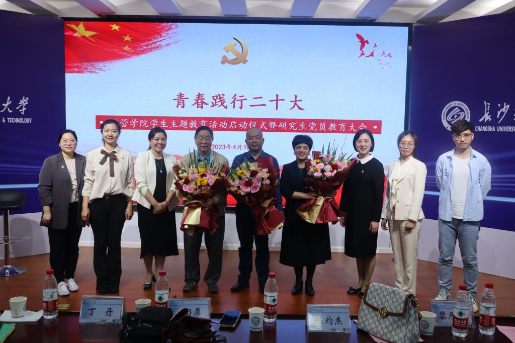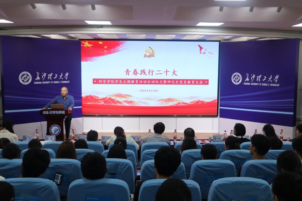 4月18日下午,经管学院在金盆岭校区12教200举行“青春践行二十大”学生主题教育活动启动仪式暨研究生党员教育大会,校关工委常务副主任王乃厚、院党委书记丁丹、特邀党建组织员宋建设、学院专职组织员丁力、院关工委常务副主任黎月娥、企管系支部书记李祝平,陈均杰老师、学工办主任周路路、研究生辅导员肖翠、吴畏及全院研究生党员,本科生代表参加,会议由学院党委副书记唐青主持。