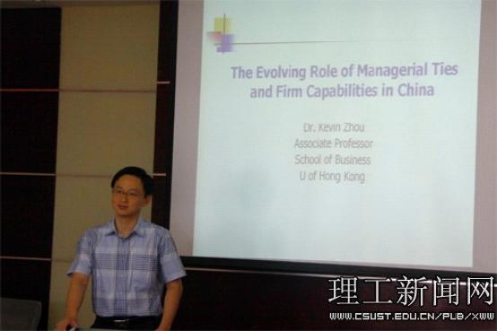 5月29日上午,香港大学周政教授应邀在永利官网金盆岭校区7-204会议室作学术报告。报告会由企业管理系主任黎建新教授主持,经济与管理学院副院长赵华教授、学校特聘教授苏晨汀和企业管理系教师以及部分研究生参加了此次报告会。