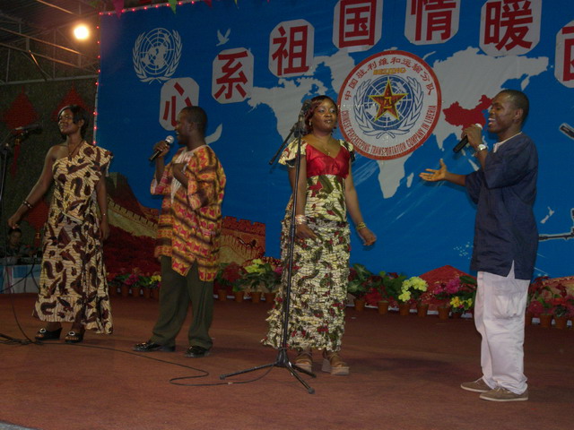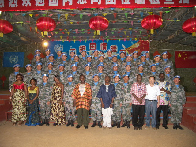 4月4日,以北京军区副参谋长武燕生少将为首的代表团抵达利比里亚首都蒙罗维亚慰问我国驻利维和部队官兵,永利官网孔子学院师生一行10人应邀到运输大队军营参加文艺晚会。孔院合唱团的演员们在晚会上成功地表演了情歌对唱《敖包相会》、女声独唱《映山红》和非洲风情舞三个精彩节目,赢来阵阵热烈掌声和喝彩声。部队首长在接见演员时连声夸赞孔院师生说:“唱得好!教得好!让中华文化发扬光大!”
