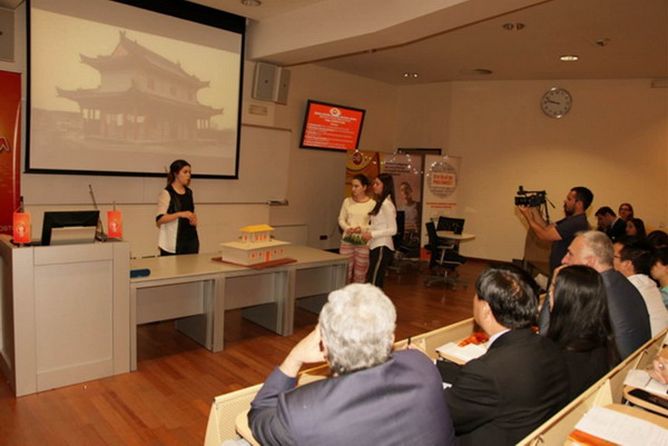 “中国理念与特色”主题展示竞赛是该校本学期在学生中开展的大型主题活动,围绕中国文化、经济、科技、社会等主题,充分发挥学生积极性,通过演讲、小品、多媒体展示等多种形式,表现他们对中国发展理念和特色的理解。活动受到师生热烈响应,共有250组1200多名学生参加了竞赛,其中有有不少学生到黑山大学孔子学院来借服装、道具,甚至来采访孔院师生,请教关于中国文化的问题。作为奖励,在决赛中胜出的学生将获得在在黑中资机构实习的机会。
