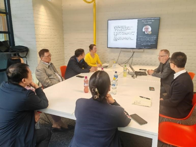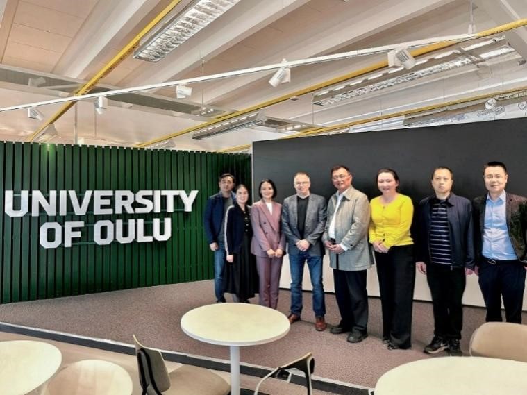 在芬兰期间,代表团访问了奥卢大学和赫尔辛基大学。在奥卢大学,代表团拜访了该校商学院学院负责人Petri Ahokangas教授。Petri Ahokangas教授介绍了奥卢大学的办学特色和学科优势,以及与中国高校的合作办学情况,还详细介绍了商学院的专业学科设置和商业分析等特色硕士项目的课程设置和培养模式。双方还分享了各自在创新创业课程建设和人才培养方面的经验,谈传生表示:“304永利集团官网入口作为中国创新创业教育排名靠前的高校之一,与奥卢大学的课程开设具有许多相似之处,希望双方能加强互访合作,鼓励芬兰学生参加中国诸如中国“互联网+”大学生创新创业大赛国际赛道等赛事”;随后代表团参观了奥卢大学的创新创业基地,并与正在工作的学生进行了详细的交流。在赫尔辛基大学,代表团着重参观了该大学的校园设施和信息化建设。