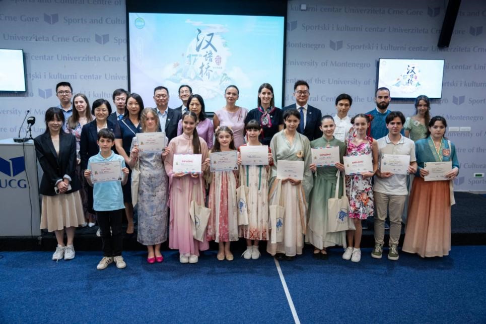 代表团在参观永利官网黑山大学孔子学院期间,受到了学院中方院长高青龙和外方院长米莱娜的热情接待,谈传生对学院外聘老师的贡献表示感谢,并重点关心了他们的工作生活情况。之后,代表团在孔子学院办公室与中外语言交流合作中心静炜副主任带领的考察团进行了深入的会谈,谈传生代表学校就学校三所孔子学院的建设成效向中心进行了重点汇报,并表示:“适逢黑山大学孔子学院建立10周年之际,304永利集团官网入口在教师派出政策激励、汉语课程进黑山大学选修课、当地教师培养等方面做出努力,力争高质量地办好孔子学院”。静炜对学校孔子学院的建设表示高度的认可。接下来,代表团会见了黑山大学校副校长Sanja Pekovic并参加了由中外语言交流合作中心与中国驻黑山大使馆共同主办,黑山大学孔子学院承办的2024年“汉语桥”世界中文比赛黑山赛区决赛。在决赛的颁奖典礼上孔子学院学生表演了各种中国传统节目,特别是合唱团表演了中文歌曲以及象征了中黑友谊的前南斯拉夫电影《桥》的主题曲,现场气氛十分热烈。语合中心副主任静炜、中国驻黑山大使范琨以及谈传生一起为获奖选手颁奖。