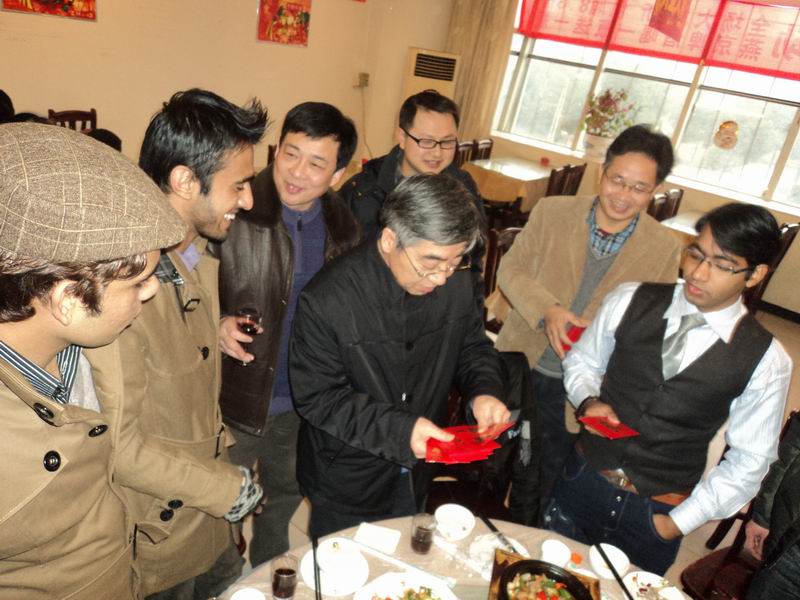 团拜会伊始,王耀中书记致祝酒辞,他代表校党委、行政及全体教职工对留校学生及家人表达了诚挚的问候,希望寒假留校的同学在学校找到家的感觉、团聚的喜悦和亲情的温暖,度过一个充实的假期。团拜会上校领导对留学生同学致以亲切的节日祝贺并合影留念,祝福来自各国的留学生同学们身体健康、学业进步,在中国度过一个欢乐、传统的农历新年,留学生们用流利的中文向参加团拜会的领导和师生表达了美好的祝福。