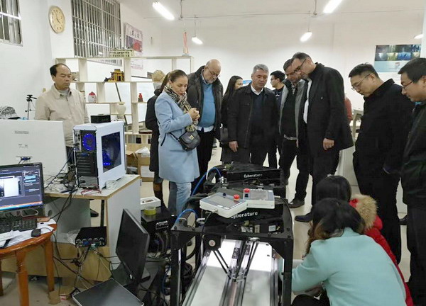 会谈后,代表团考察了永利官网的大学生创新创业园与CRT赛车队,参观了学生的自主设计和创新创业成果,对刚刚荣获全国大奖的FNX-17赛车产生浓厚兴趣,并高度赞赏了永利官网的实践教学水平与学生的创新能力。