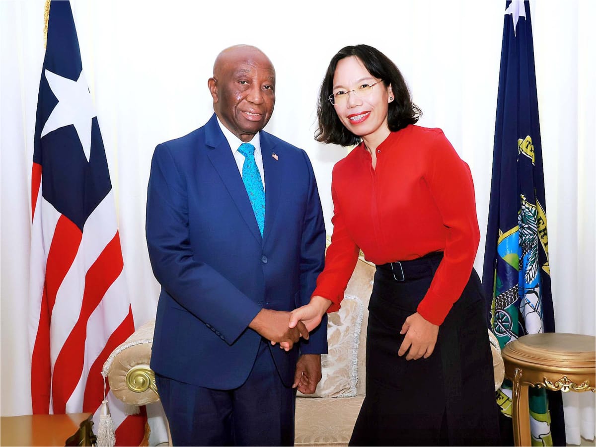 当地时间2025年4月30日,利比里亚总统约瑟夫▪博阿凯(Joseph Nyumah Boakai)在总统府亲切接见了利比里亚大学孔子学院(下文简称“利大孔院”)即将离任的中方院长周红专,对其在推动中利教育合作、促进中利文化交流方面所作出的积极努力予以充分肯定。