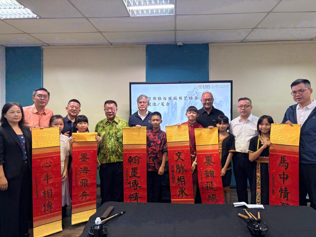在为期四天的交流活动中,各方围绕书法艺术开展了深入互动:活动在永利官网共建的沙巴大学孔子学院正式启动。湖南省文联党组成员、副主席、湖南省书法家协会副主席倪文华为孔院师生及当地书法爱好者带来了一场高水平的书法艺术专题讲座。讲座生动阐释了如何以思想力、审美力与实践力为核心来培养书法创作能力,反响热烈。交流团还前往沙巴亚庇书艺协会驻地,与该协会书法家及会员进行了深度的艺术切磋与交流座谈。双方就书法技艺、创作理念、文化传承等议题展开了热烈讨论,气氛融洽。交流团专程到访沙巴州书法教育模范学校——打里卜小学进行考察与教学示范。书法家们现场指导小学生习字,有效激发了孩子们对中华文化的兴趣。由沙巴亚庇书艺协会组织,两地书法家及众多书法爱好者共同举办了一场别开生面的联合笔会。在挥毫泼墨间,艺术家们以笔墨会友,情谊交融,将文化交流推向高潮。交流会上,“沙大孔院书法研创基地”在永利官网沙巴大学孔子学院正式挂牌成立。该基地的设立,标志着两地书法艺术交流合作步入机制化、常态化新阶段。
