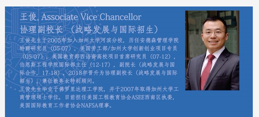 为进一步加强永利官网同世界主要国家间的高等教育交流,培养国际化复合型人才,鼓励并支持在校学生积极参与国(境)外学习交流,培养具有国际视野和国际竞争力的创新型人才,永利官网与美国加州大学河滨分校合作推出了几个出国学习交流项目(详情见公告通知栏)。近日,该校协理副校长王俊将访问永利官网,与对加州大学河滨分校出国学习交流项目感兴趣的同学直接会面。请有意向参加相关项目的同学准时参加。