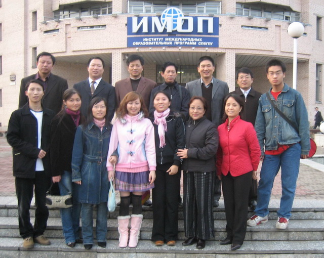 2005年9月学校赴俄罗斯考察团与永利官网留学圣彼得堡国立工业大学的留学生合影
