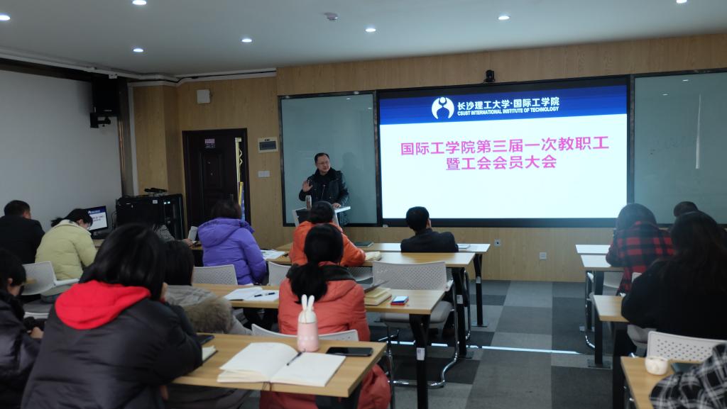 2022年1月18日下午,国际工学院在新能源大楼1栋404室顺利召开第三届一次教职工暨工会会员大会。国际工学院全体教职工参加会议,会议由副院长兼分工会主席黄月华主持。