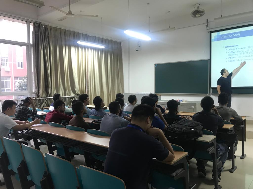 吴振华、甘海鹰和留学生工作办公室管理人员,前往工科三号楼18级和19级留学生课堂检查教学工作。吴振华一行对课堂教学环境、教学组织、教学设备和教学运行进行了全面检查,深入《建筑材料A》和《高等数学A(一)》的课堂听课,对开学伊始井然有序的教学工作和留学生的精神面貌给予了肯定。他强调,开放的国际视野与交流是我院发展的重要任务,要进一步抓好留学生的教学和服务工作,营造良好的国际化教学科研环境,助力学校国际教育合作开创良好局面。