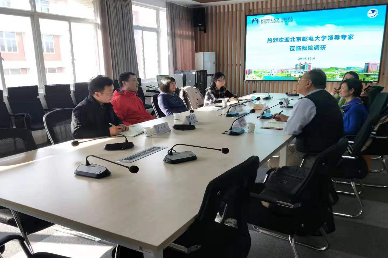 304永利集团官网入口国际学院党委副书记兼副院长吴振华、副院长甘海鹰以及负责汉语教学和留学生招生的相关负责老师参加了调研会。调研会伊始,甘海鹰对北京邮电大学来我学院调研表示热烈欢迎,并详细介绍了如何整合学校优势学科、师资团队和教学平台招收和培养国际学生。双方就国际语言研修生的招生和教学培养、“汉语+”项目方面的申请及培养方案和教学计划的制订进行了交流,并深入讨论了校企合作生、校际合作生的教学培养途径。