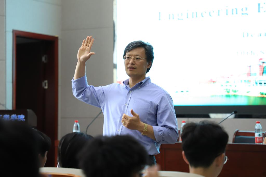 会上,Pack院长介绍了UTC的历史沿革、土木工程学科的发展历程和现有架构以及工程教育的政策环境和具体举措,结合生活实际分析土木工程专业现状及未来趋势。并由HAPPY一词切入,用生动详实的影像材料为实证,介绍了H(Health)-A(Attitude)-P(Plan)-P(Perseverance)-Y(You)理论,深入浅出地向同学们阐述了一个朴素的道理:成功没有捷径,也绝非偶然,只有充分的自尊自爱,积极的学习态度,全面的行动计划,坚韧的意志支撑以及持续的内在驱动,才能最终有所成就。