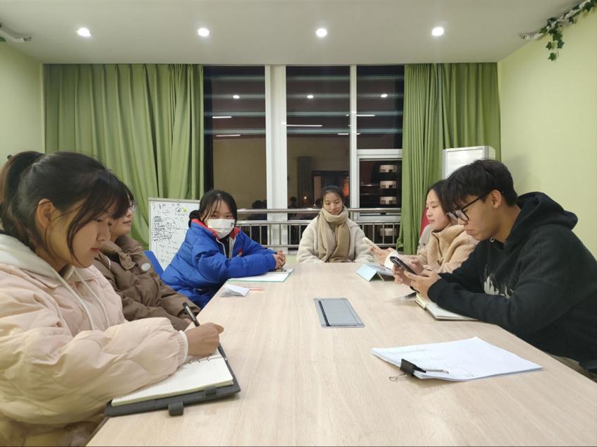 2022年12月9日晚,国际工学院心理部成员在新能源一栋405召开了本学年年终工作总结会议,辅导员魏涛和心理部全体成员参与。