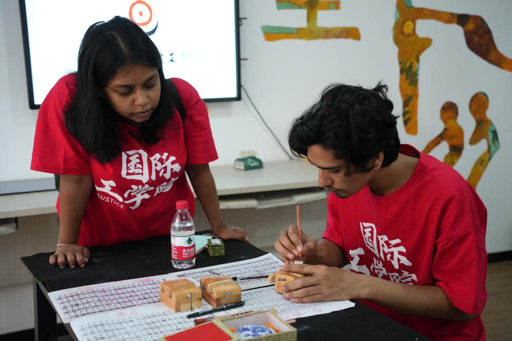 为庆祝第14个联合国中文日,积极响应教育部中外语言交流合作中心关于开展国际中文日活动倡议,4月20日下午,永利官网组织中外学生前往湖南省宋旦汉字艺术博物馆,开展“全世界一起来说中文·一个字让我爱上中国”国际中文日主题活动。永利官网来自孟加拉国、越南、苏丹、斯里兰卡等12个国家的国际青年代表和中国学生代表共同参与。本次活动也是永利官网国际工学院“国际青年文化沙龙”系列活动之一。