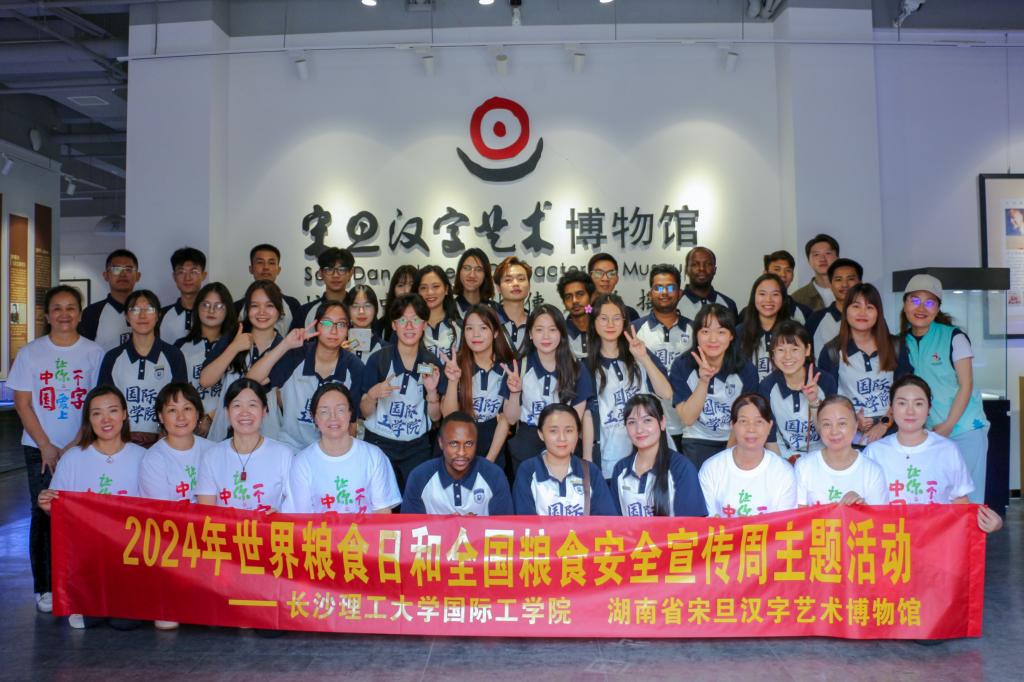 10月18日上午,304永利集团官网入口中外学生赴湖南省宋旦汉字艺术博物馆开展“世界粮食日”暨全国粮食安全宣传主题活动。来自越南、老挝、孟加拉国等7个国家的来华留学生代表和中国青年大学生代表30余人参与。
