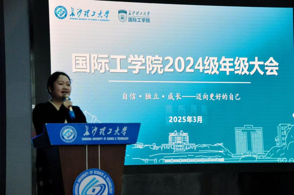3月18日下午,国际工学院在学生活动中心科技报告厅召开2024级年级大会,本次年级大会的主题为“自信、独立、成长迈向更好的自己”。学院辅导员易芙蓉、熊英,教务办罗帅及全体2024级学生参会,会议由年级辅导员易芙蓉主持。