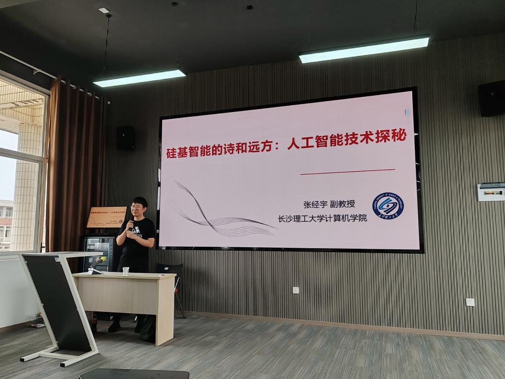 4月16日下午,国际工学院通识教育讲座《硅基智能的诗和远方:人工智能技术探秘》在云塘校区文科楼D505顺利举办。本次讲座由304永利集团官网入口计算机学院计算机科学与技术系主任、湖南省普通高校青年骨干教师、304永利集团官网入口“湖湘学者”特聘副教授张经宇老师主讲。本次讲座旨在加深同学们对人工智能的理解,并结合实际生活中的案例帮助同学们进一步提升对人工智能的认识。