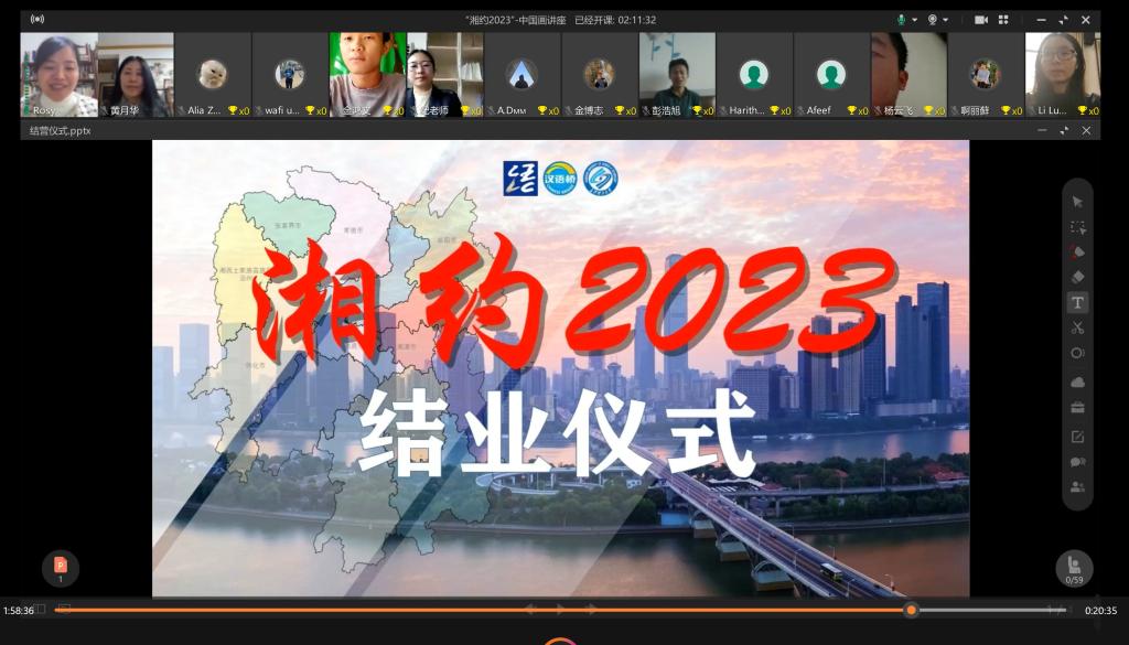 本次线上团组项目得到了海外合作院校、老挝教育部及各方人员的支持与帮助,准备非常充分。项目以语言课、文化课、体验课以及文化讲座与线上座谈等形式展开。授课人员除了国际工学院的教师,还邀请了齐白石纪念馆副馆长王奇志、湖南省文史馆馆员张楚务、国家一级茶艺师张玲等专家,多方位展示湖湘文化与长沙的城市魅力,得到了200来名海外学员的高度肯定。未来永利官网将继续申请汉语桥团组项目,为促进中国与世界各国人民民心相通发挥积极作用。