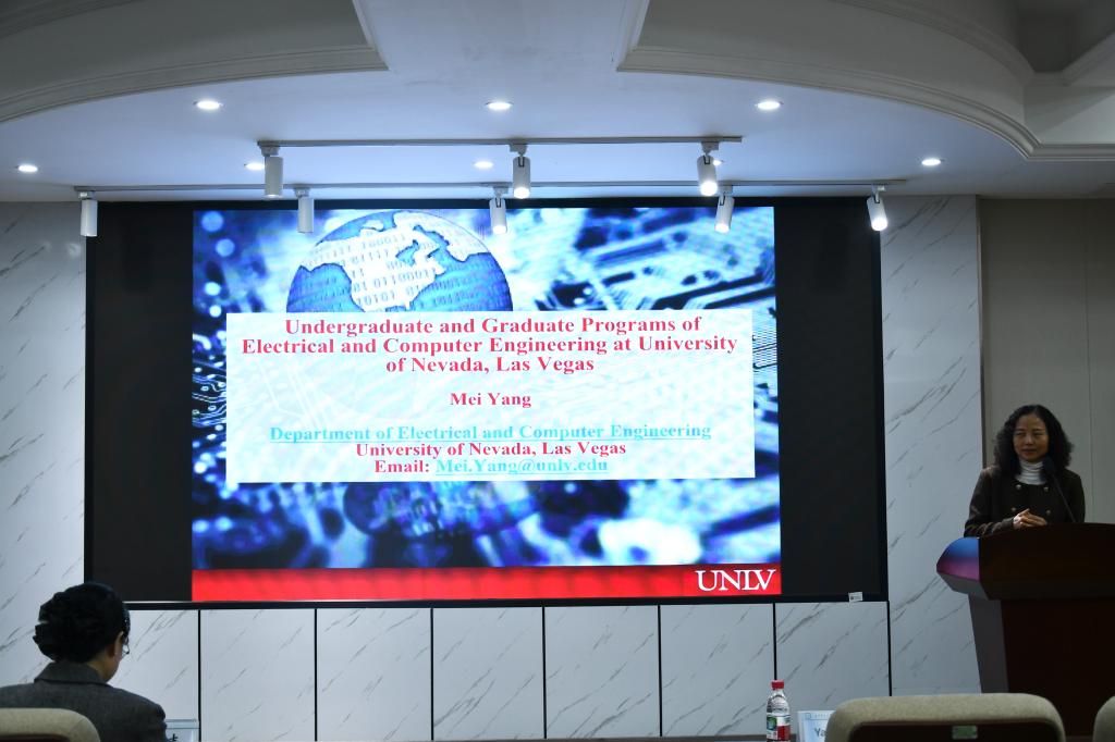 12月30日下午,美国内华达大学拉斯维加斯分校(UNLV)电气工程专业宣介会在云塘校区文科楼D区207报告厅举行。本次宣介会特邀UNLV工程学院电气工程系主任 Mei Yang教授主讲,教务办主任余志老师以及永利官网中外合作办学项目电气专业50余名学生参加。