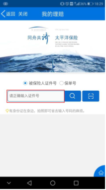 2.进入申请理赔,用出险人身份证点击查询。