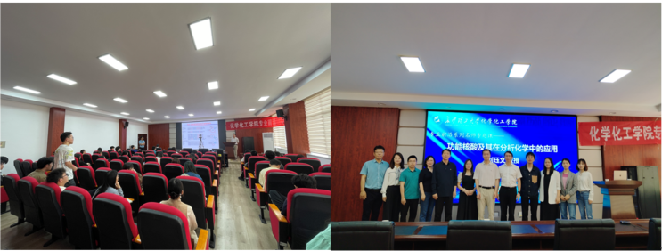 2023年5月24日上午,化学化工学院“化学化工类专业前沿系列名师专题课程”第三讲在工三A320会议室开展,特邀嘉宾为加拿大滑铁卢大学化学系教授、加拿大皇家学会青年院士刘珏文教授,讲座主题为“功能核酸及其在分析化学中的应用”。讲座由化学化工学院副院长(主持工作)张跃飞主持,副院长卿志和、学院教授委员会副主任朱志平、以及学院部分师生共计100余人参加了本次专题课。