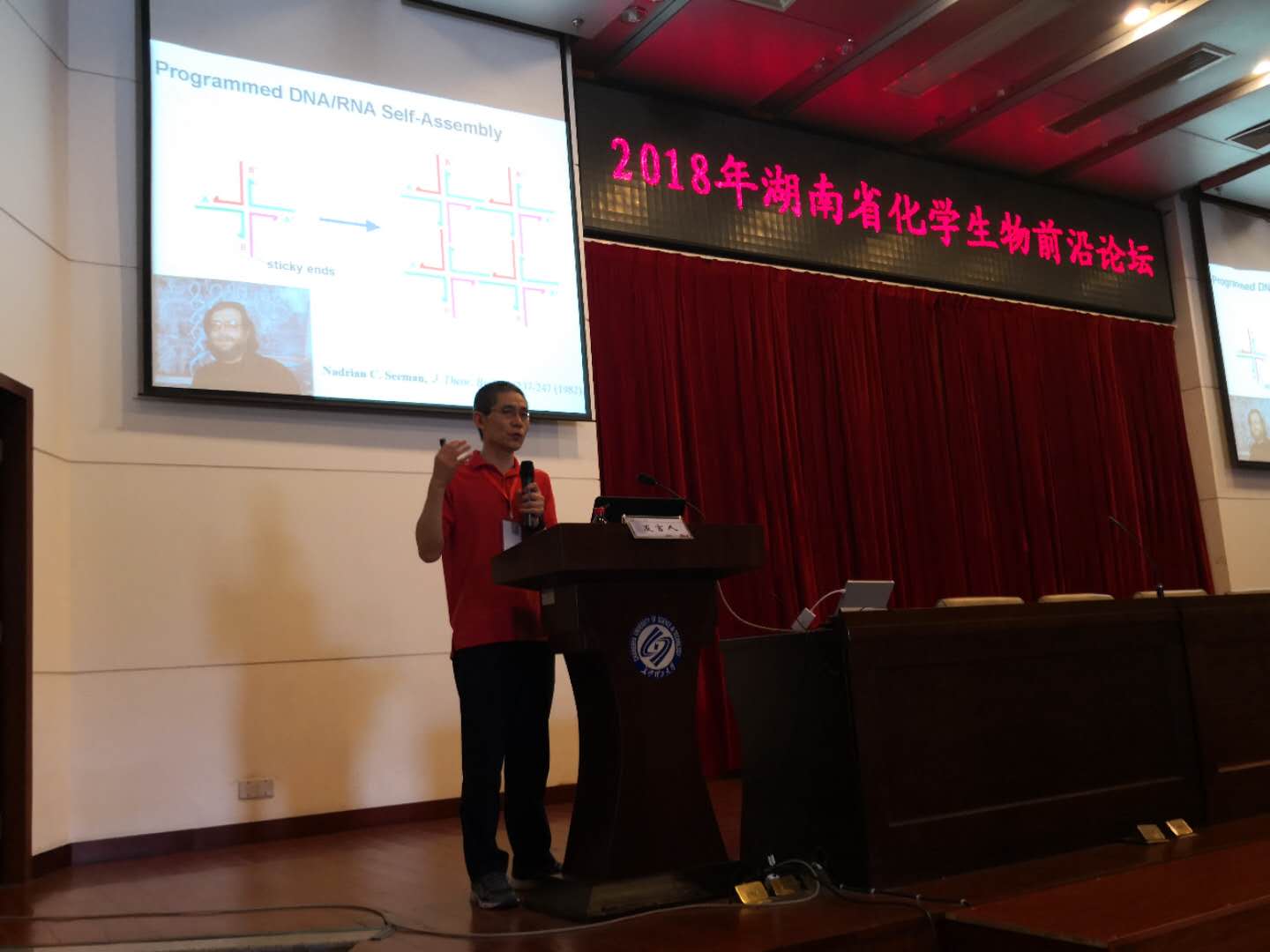 国际著名生物纳米专家,美国普渡大学毛成德教授做了“In Vivo Production of Designed RNA Nanostructures”的报告,阐述了核酸折纸技术的基本理论,并详细介绍了体内原位合成RNA纳米结构的研究进展;英国皇家化学会《Analytical Methods》杂志副主编、加拿大滑铁卢大学刘珏文教授做了“核酸-纳米材料表界面研究”的报告;国家“973”项目首席专家、国家杰出青年基金获得者樊春海教授做了“基于框架核酸的界面调控与生物分析应用”的报告,系统介绍了他近期发表在《Nature》上的最新成果;国家杰出青年基金获得者、教育部“长江学者”奖励计划特聘,清华大学刘冬生教授做了“基于框架诱导组装的模块化纳米载药体系”的报告,国家杰出青年基金获得者刘志洪教授做了“上转换荧光分析”的报告、国家杰出青年基金获得者汪乐余教授做了“高性能纳米探针:设计、构筑与分析应用”的报告,国家杰出青年基金获得者复旦大学张凡教授做了“近红外光学活体多重成像分析”的报告,国家杰青北京大学要茂盛教授做了“Detection of Living System Biomarker Using BioSTAND”的报告;国家优青、青年长江湖南大学袁荃教授做了“无背景纳米生物分析方法研究”的报告。这些精彩纷呈的学术报告充分展示了在化学、生物、医药、纳米材料、环境、化工等研究方向与学科领域的最新研究进展与应用前景。